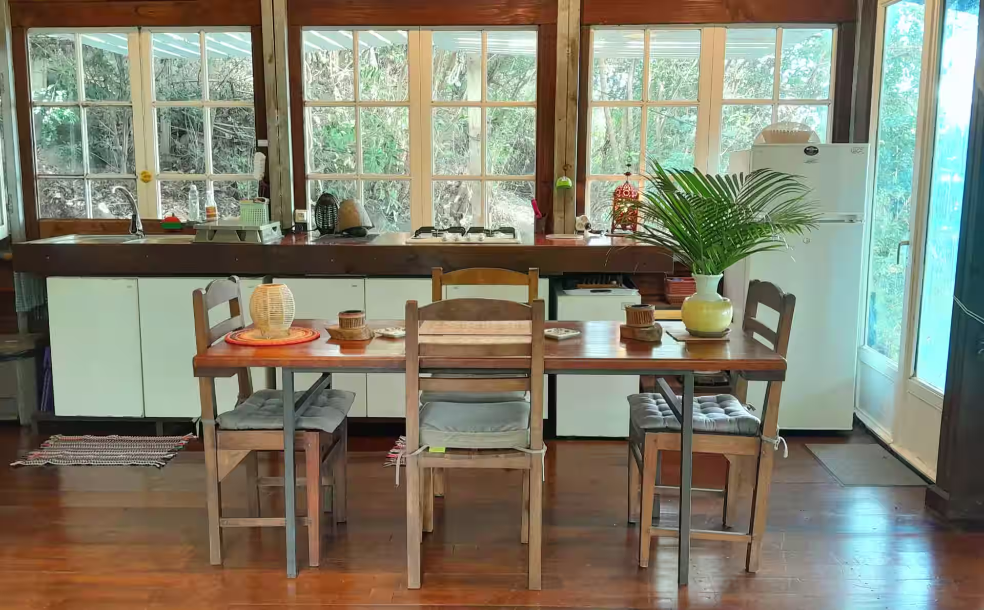 LA MAISON ZEN est une location de vacances indépendante, pour deux personnes maximum (un couple) ou une personne, toute simple et confortable, TOUT EN RÉCUP'. Vous profitez d'un cadre idyllique à 200 m d'altitude (températures agréables) et d'un jardin tropical luxuriant qui surplombe la vue panoramique à 180° sur l'Océan indien. Rendez-vous sur notre site lamaisonzen.re pour plus d'infos et de photos.