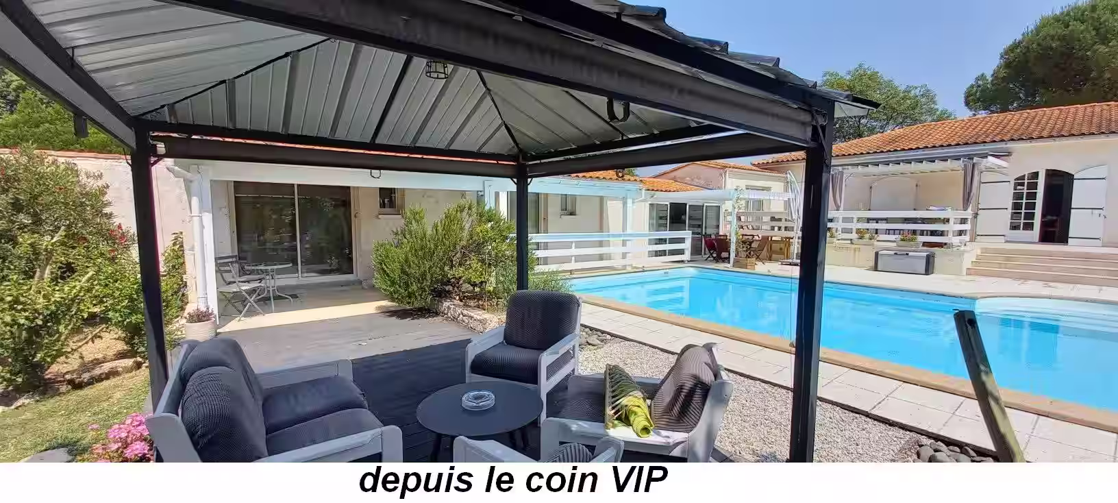 Nos deux chambres donnent sur la piscine. Chaque chambre dispose d'une douche, WC, lavabo.