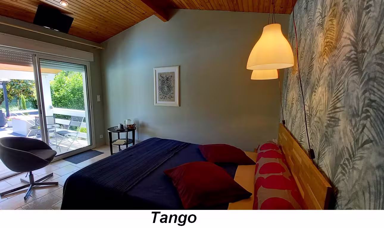 - La chambre Tango au prix de 70€ possède une terrasse privative ainsi qu'un lit à mémoire de forme et d'une salle de bain plus grande.